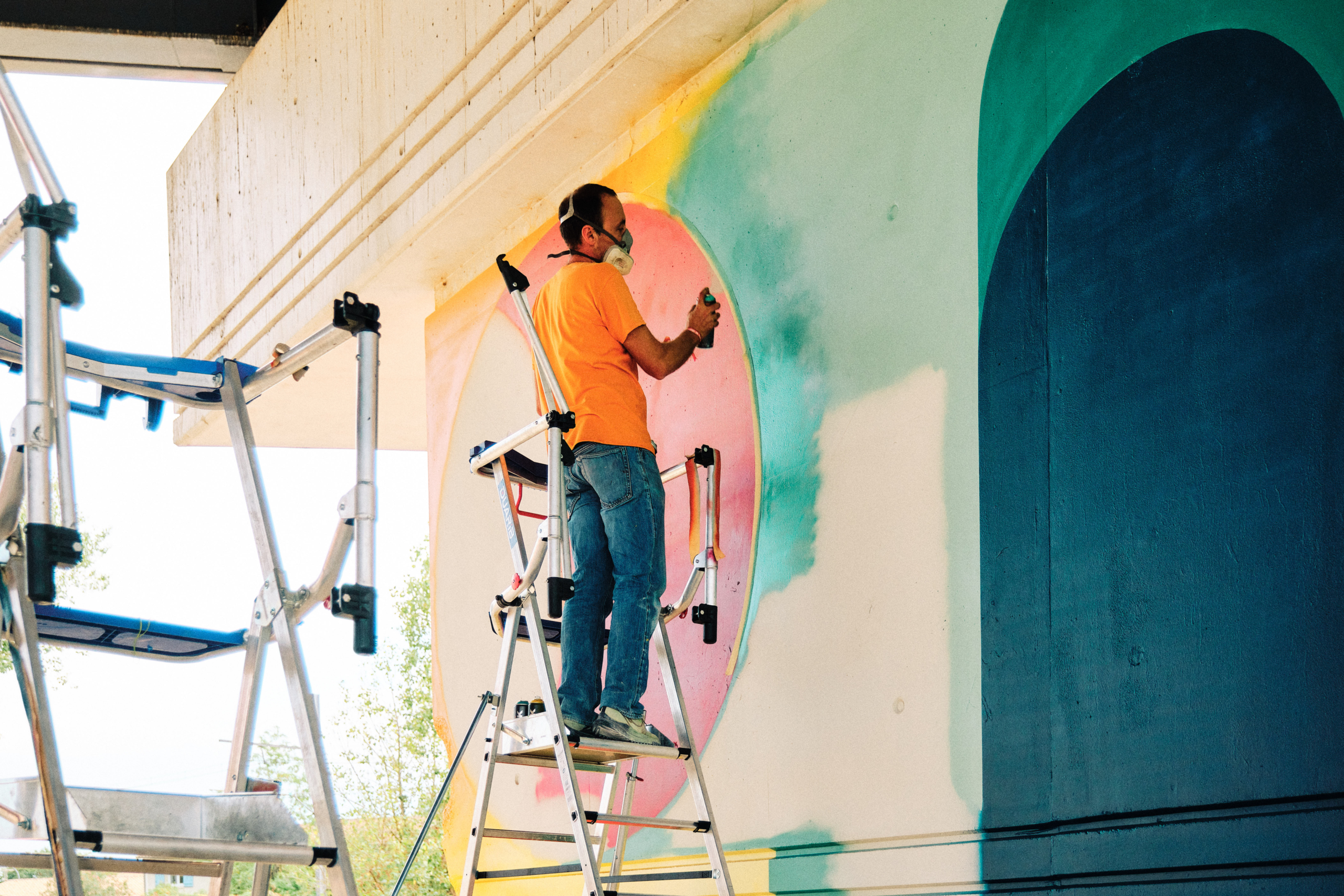 Peinte sur une surface de 35 m², en trois jours et en direct, devant 6000 personnes, cette œuvre abstraite aux couleurs chaudes semble percer le mur et nous rappelle l'architecture Napolitaine liée aux origines Italiennes de l'artiste.